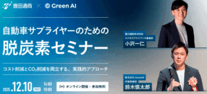 本ウェビナーでは、自動車業界における脱炭素の課題と豊田通商の先進的なCO₂削減ソリューションに加え、